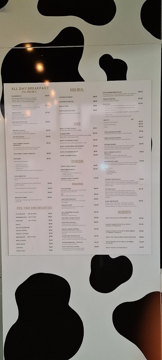 Crazy Cow Cafe & Dessert Bar Menu